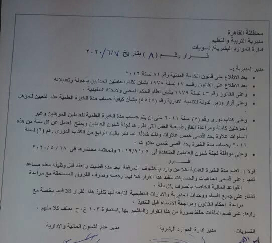 بالمستندات ننشر الفروق المالية المستحقة نتيجة ضم مدة خدمة سابقة لجميع المعلمين